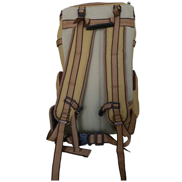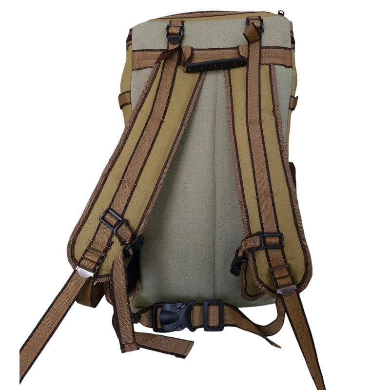 این کوله پشتی از برزنت اصل و اعلا با سگک های فلزی تهیه شده است. پشت کوله دارای پدهای قوی و راشل و دستگیره پلاستیکی محکم برای حمل دستی کوله است. این کوله دارای بند قفسه سینه ، جیب های زیپ دار در قسمت بالا و طرفین کوله، بندهای مخصوص در طرفین و بالا و پایین کوله برای بستن چادر و زیرانداز و پتو است.داخل کوله تمام بامتریال ضدآب آسترکشی شده و در پایین کوله زیپ دسترسی مخصوص وجود دارد. تمام زیپ ها قوی باسرزیپ های فلزیست. ابعاد کوله20*32*60 سانت است.در زیر کوله نیز برای جلوگیری از خاکی شدن استنت کار شده است.
