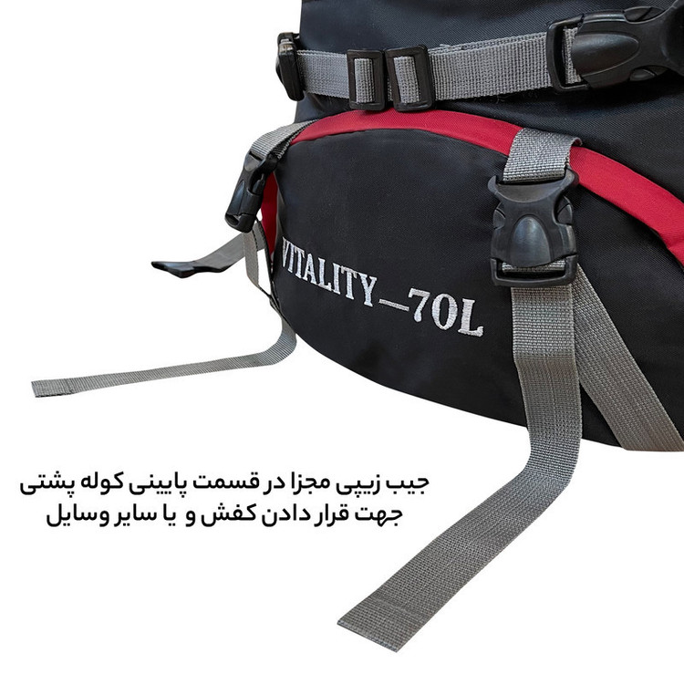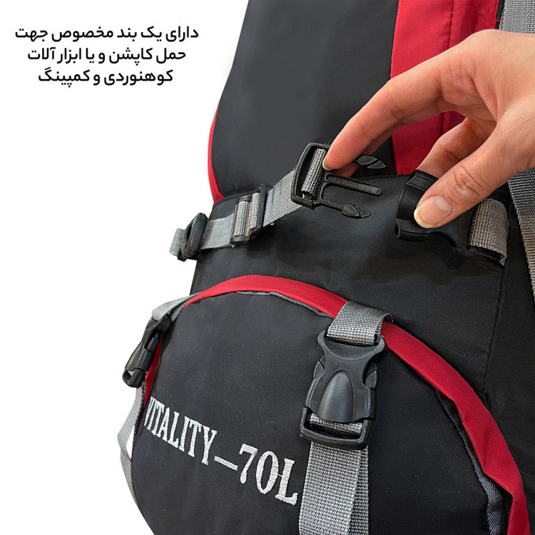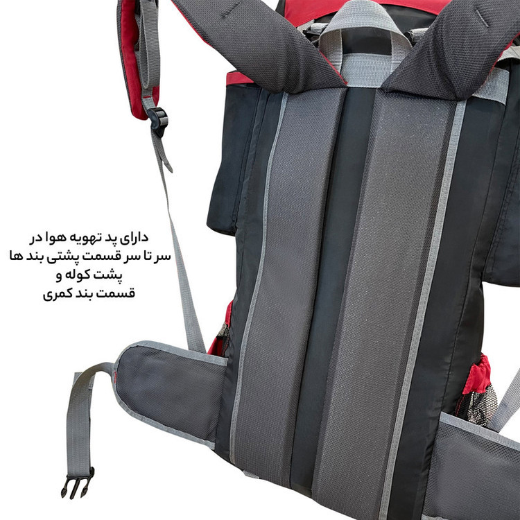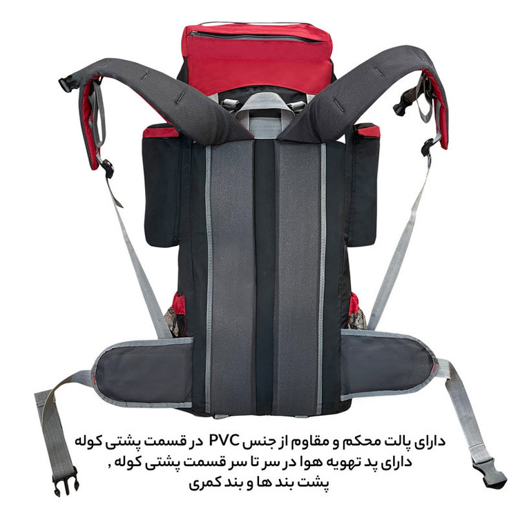 جنس پارچه این محصول خارجی و ضد آب( پارچه خلبانی) و کاملا قابل شستشو است. این کوله دارای 9 جیب بیرونی است که7 تای آن زیپ دار است.آستر بسیار با کیفیت در سراسر کوله وجود دارد . همچنین پدعرق گیر پشت کوله وجوددارد و بند کمری بسیار مقاوم آن توازن بسیار خوبی را در وزن آن ایجاد می کند. بندهای اضافی که در جلو و پایین کوله که با سگک مهار شده اند تا به راحتی کیسه خواب، زیر انداز، پتو، چادر و .... را روی کوله ببندید .ضمنا ابعاد کوله 80x40x26 سانتی متر و وزن آن 1200 گرم است.