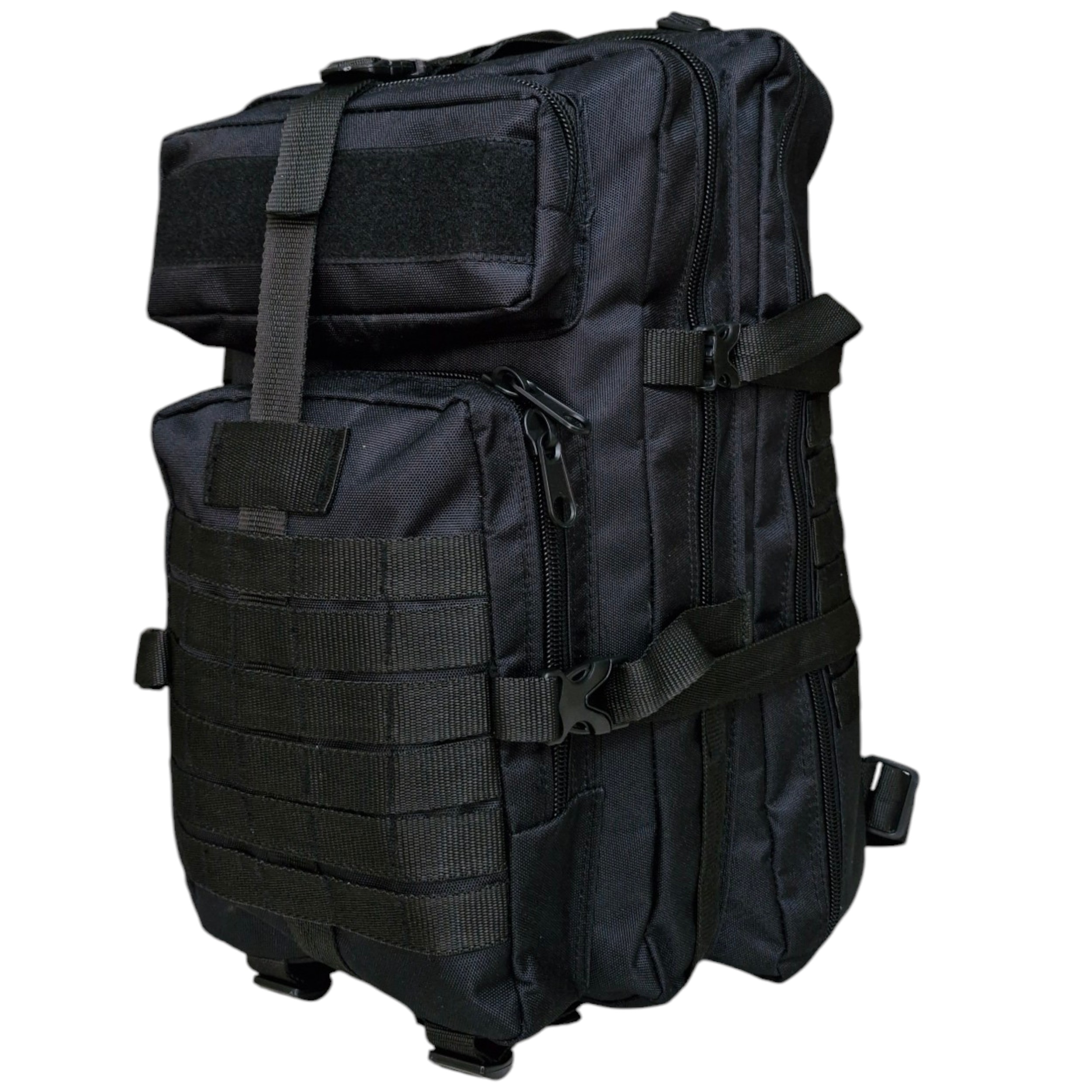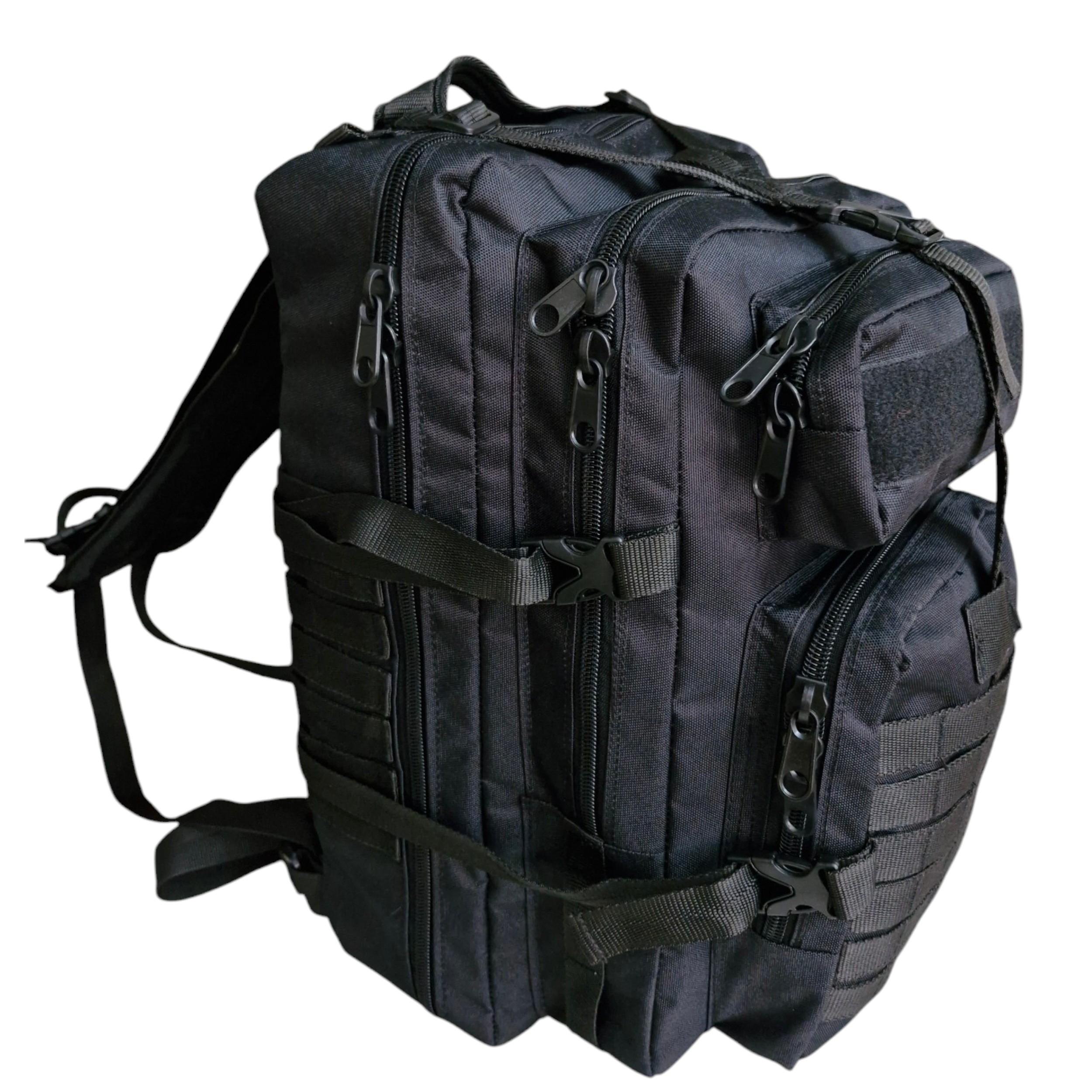 این کوله پشتی تاکتیکال از برزنت اعلا قوی تهیه شده و دارای دو محفظه تقریبا بزرگ و سه عدد جیب خارجی با سایز های متفاوت میباشد ، تمامی جیب ها و محفظه ها دارای زیپ دو طرفه میباشند.داخل محفظه اصلی کوله دو عدد جیب بزرگ تعبیه شده که یکی جهت قرار دادن تبلت و یا لپ تاب های کوچک و دیگری برای مدارک ، خودکار و دفتر یاداشت ،تلفن همراه و سایر لوازم با ارزش است. در پشت از پد فومی تنفس پذیر استفاده شده و کوله دارای بند کمری و بند روی سینه است.کوله پشتی تاکتیکال مناسب فعالیت های کمپینگ و مسافرت بوده و وزن کوله 1440 گرم است.و ابعاد کوله در حالت پر شده برابر 32x35x52 سانتیمتر است.